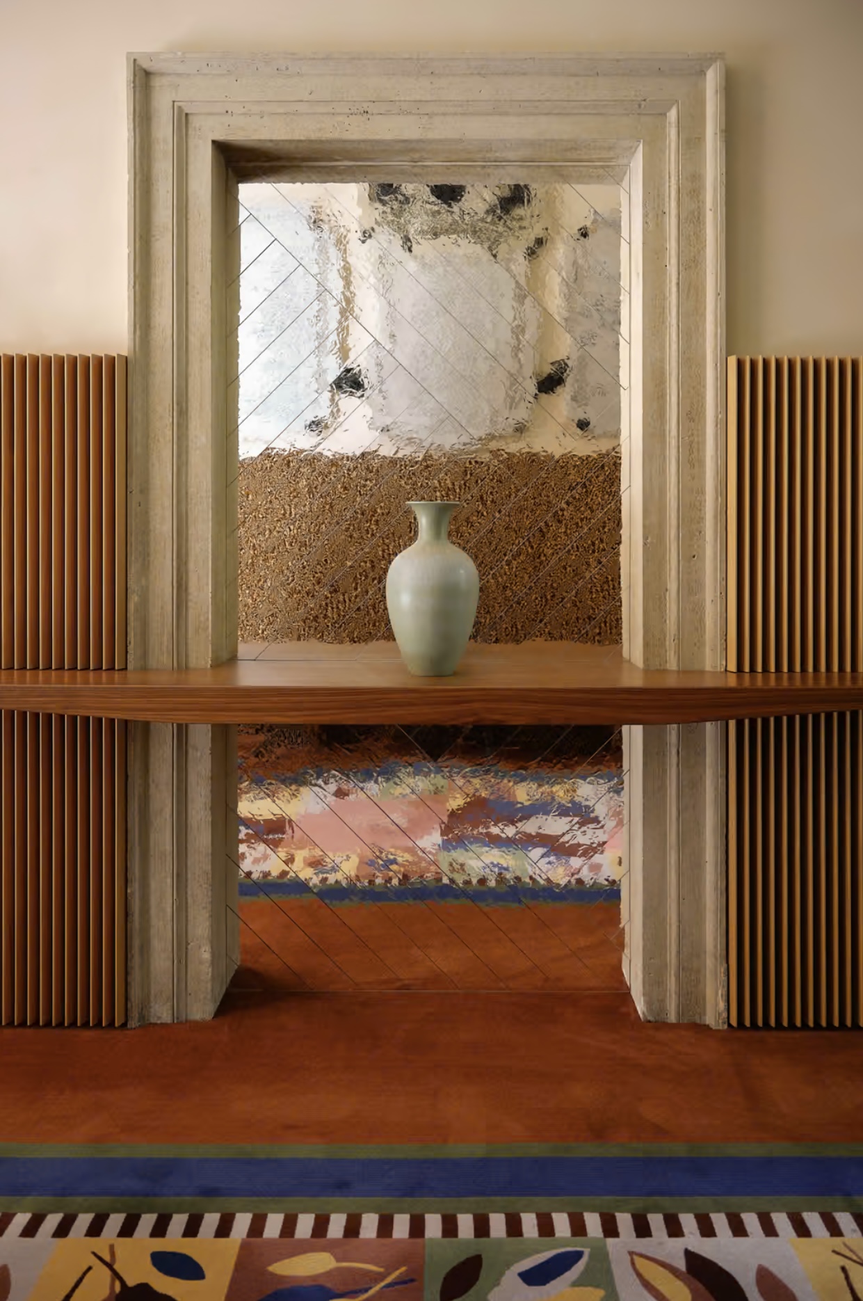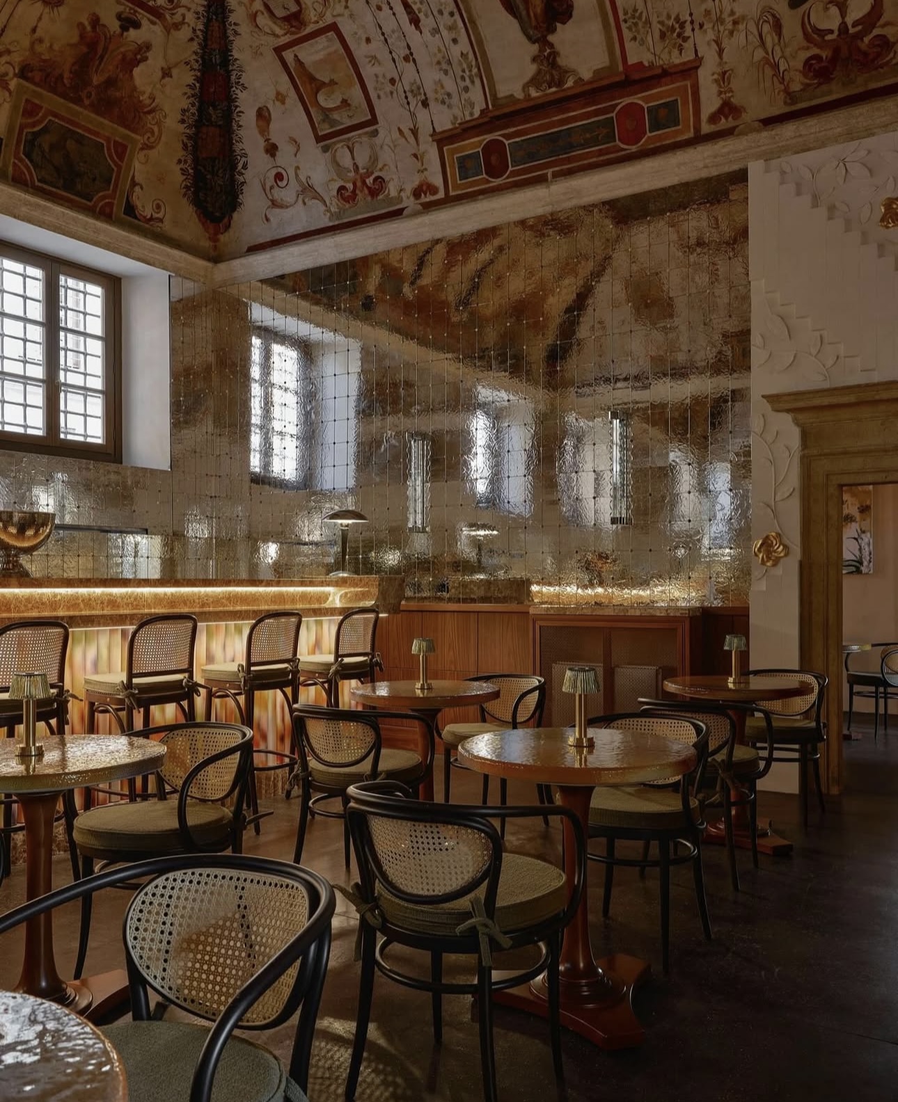 თანამედროვე სტილში ინტერპრეტირებული ტრადიციული დიზაინის სასტუმროში შეხვდებით როგორც საუკუნოვან ფრესკებს, ისე თანამედროვე ხელოვნების ნიმუშებს. კონცეფციის შესაბამისად, სივრცის ყოველ ელემენტს - გეომეტრიას, განათებებს, ფრესკებს, იატაკს და ჭერს, ქანდაკებებს, დიზაინერულ ობიექტებსა და ფერთა პალიტრას - დიდი მნიშვნელობა ენიჭება. სივრცეებში ვხვდებით წითელ, შინდისფერ და ვარდისფერ ხალიჩებს, ამავე ფერის სავარძლებს, რომლებიც გარშემორტყმულია ძველი რომის იმპერატორების მარმარილოს ბიუსტებით. მთავარი დერეფნის ნაწილია 1940-იანი წლების ვენეციური შუშის მასიური ჭაღი და სხვადასხვა დეკორაციული ნივთი.