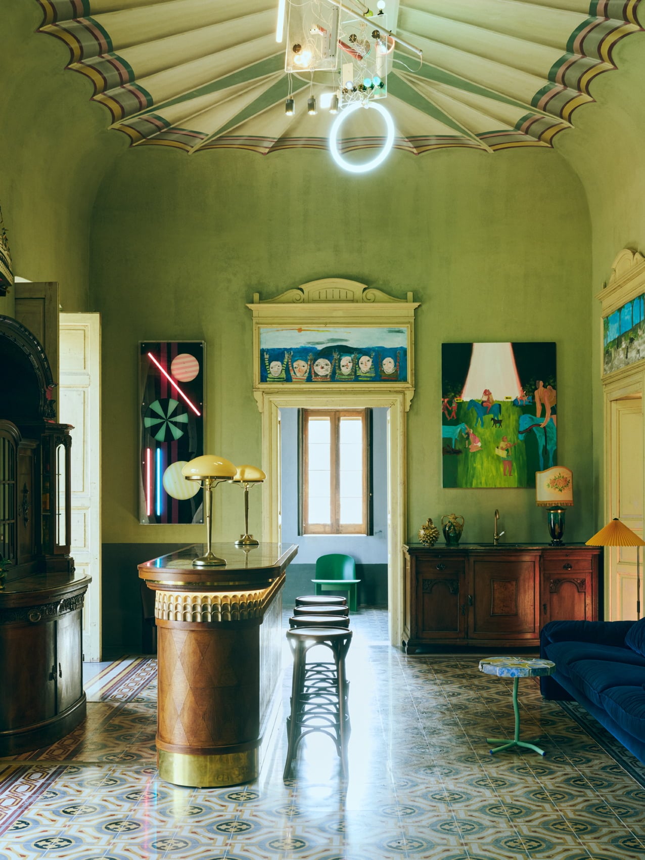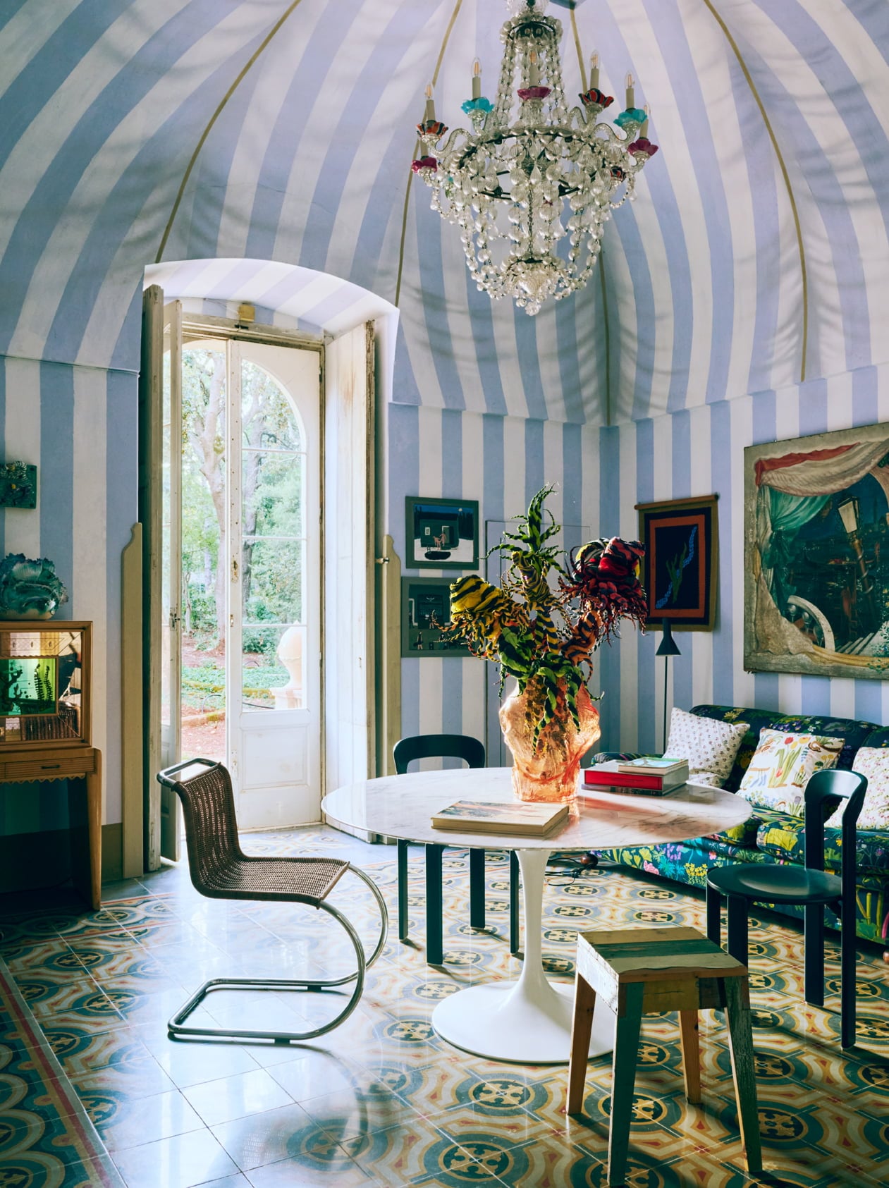 იტალიური და სკანდინავიური სტილით შექმნილი ვილას სივრცეების დახვეწილ ესთეტიკას ასევე აფორმებს ავეჯი, რომელიც წარმოადგენს ცნობილი დანიური დიზაინის ბრენდის - HAY-ის სხვადასხვა დიზანერთან თანამშრომლობით შექმნილ ნამუშევრებს, მაგალითად, Muller Van Severen-სთან, ბრუნო რეისთან და ჰესიკა ჰანსთან თანამშრომლობით შექმნილ ნივთებს. ვილაში საკულტო ვინტაჟურ ავეჯსაც შეხვდებით, აქ ნახავთ Gio Ponti-ის სკამებსა და Vico Magistretti-ის დივნებს, მნიშვნელოვან არტეფაქტებს, რომლებიც წლების განმავლობაში შეგროვდა როგორც ვინტაჟური მაღაზიებიდან, ისე სხვადასხვა აუქციონზე. ასე რომ, Villa Colucci-ში ვინტაჟურ და თანამედროვე ობიექტებს, ასევე უამრავ ხელოვნების ნიმუშს აღმოაჩენთ, თითოეული სივრცე აქ წარსულსა და აწმყოს შორის დიალოგს ქმნის და ერთგვარ მხატვრულ ისტორიას ჰყვება.