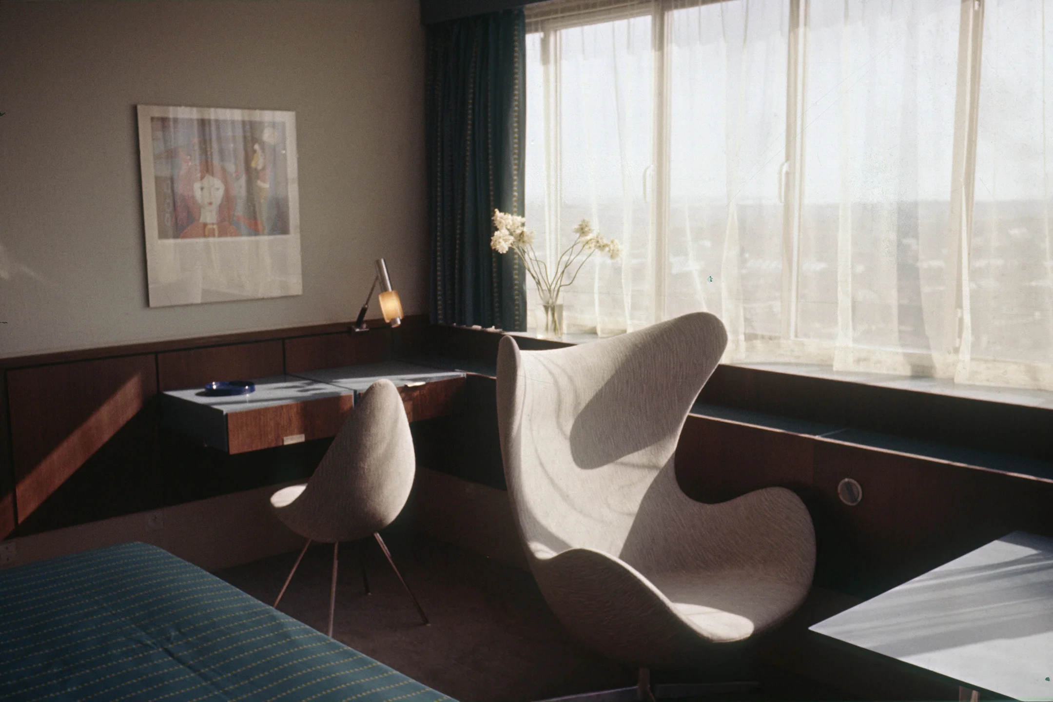 SAS Royal Hotel – კოპენჰაგენის პირველი ცათამბჯენი, რომლის როგორც არქიტექტურა, ისე ავეჯი, ტექსტილი, განათება და ინტერიერის დიზაინი იაკობსენის მიერ არის შექმნილი და მისი დიზაინი ისტორიაში ერთ-ერთ მნიშვნელოვან მემკვიდრეობად ითვლება. ამავე სასტუმროსთვის იაკობსენმა შექმნა AJ Lighting Series, რომელიც მოიცავს მაგიდისა და კედლის სანათებს და იმ დროისთვის ინოვაციური ფუნქციებით გამოირჩეოდა. ზოგადად არნე იაკობსენი თავის კარიერაში მუდმივად აკეთებდა აქცენტს ინოვაციური მასალებისა და ტექნიკის გამოყენებაზე, მისი მთავარი მიზანი ყოველთვის პრაქტიკულობა იყო, რომელიც ვიზუალურ დახვეწილობას ერწყმის და მთლიანობაში, ყოველი დეტალის გათვალისწინებით, იაკობსენის უნიკალურ ხელწერას განსაზღვრავს. ორგანული, ბუნებრივი ფორმების სიყვარულსა და ლანდშაფტისადმი პატივისცემას გარდა არქიტექტურისა, იგი მუდმივად გამოხატავდა ავეჯსა და ქსოვილებში.