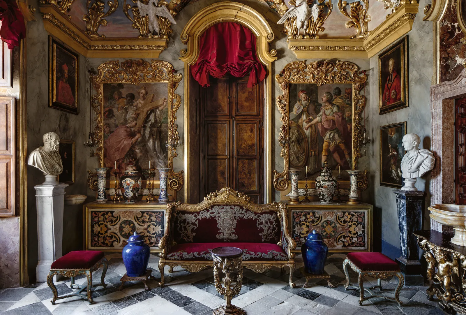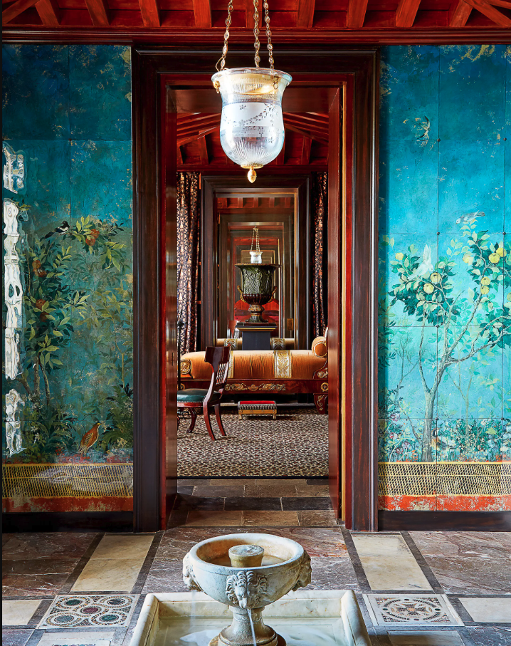ჟაკ გარსიამ ვილა ელენას თითოეული ოთახის აღსადგენად ისეთი ძვირფასი მასალები გამოიყენა, როგორებიცაა ფერადი მარმარილო, აბრეშუმი, ხავერდი და უძველესი მაიოლიკა. შენობის ყველა კუთხეში უამრავ საინტერესო ნივთს ვხვდებით - ვილაში ნაქარგი აბრეშუმებითა და როკოკოს სტილის სარკეებით გაფორმებული მუსიკალურ ოთახი მდებარეობს, აქვეა მოოქრული სასადილო ოთახი მე-18 საუკუნის მურანოს ჭაღითა და ანტიკვარული იტალიური სკამებით. კედლები გაფორმებულია ბაროკოს ნახატებით, ხოლო მთელ სივრცეში განთავსებულია სიცილიური ავეჯის უნიკალური კოლექცია და სკულპტურები.