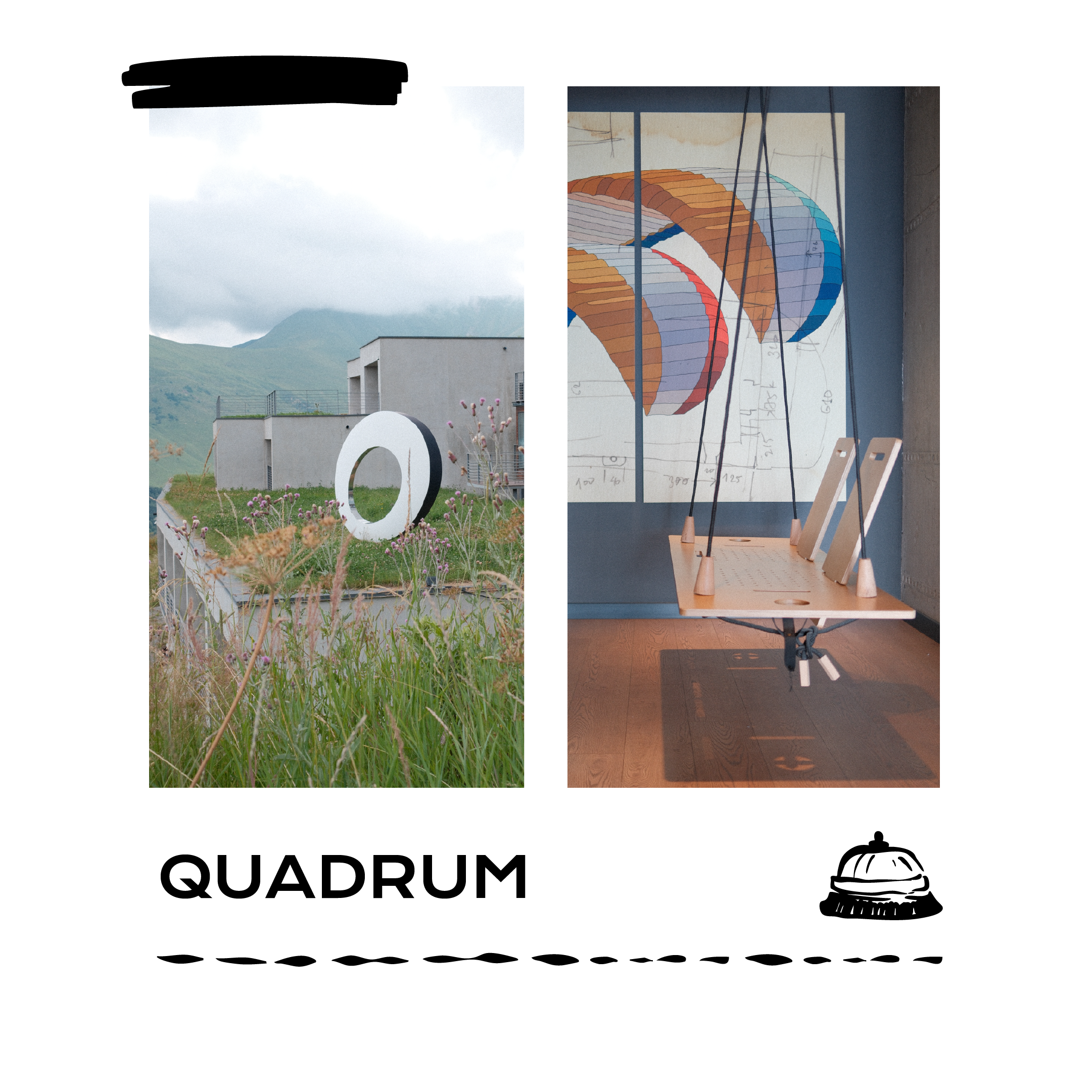 ზედა გუდაურში საინტერესო არქიტექტურის მქონე დიზაინ-სასტუმრო - კვადრუმი მდებარეობს. ხის კონტეინერებში განთავსებული ნომრებიდან თვალწარმტაცი ხედები იშლება. აქვეა სასტუმროს ახალი შენობა მწვანე გადახურვით, რომელიც ჰარმონიულად ერწყმის გარემოს. კვადრუმის ახალ ნაწილში აღმოაჩენთ მაია სუმბაძის ნამუშევრებს, ვაჟა მიქაბერიძის (პრასტოს) სკულპტურას და “ფუნდუკის” ავეჯს. აქვეა იოგას ოთახი, აუზი და ფინური საუნა.