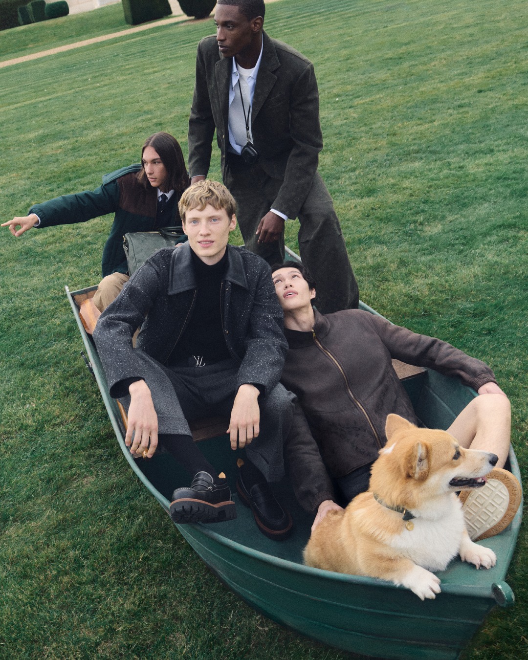 კამპანიაში მსახიობთან და ფეხბურთელთან ერთად მონაწილეობენ ოთხფეხა მეგობრები, რაც კადრებს კიდევ უფრო განსაკუთრებულს ხდის. უახლესი კამპანია ფარელ უილიამსის ხედვით ეხმიანება კლასიკურ ბრიტანულ სტილს. ფოტოსესია გადაღებულია ისტორიული სასახლის, მწვანე ბაღებისა და ვინტაჟური კაბრიოლეტის ფონზე. ტერნერმა და ბელინგემმა ახალი კოლექციიდან მოირგეს ბრენდის ისეთი სამოსი, როგორიცაა Prince of Wales ქურთუკი LV Monogram სიმბოლოთი, პიჯაკები და ჟილეტები, გრძელი პალტოები და კუბოკრული მოსაცმელები, რომლებიც ხაზს უსვამს ფრანგული მოდის სახლის ელეგანტურობას. ზოგიერთი მათგანი ასევე გაფორმებულია ბრენდის ახალი - Monogram Surplus ნიმუშებით.
