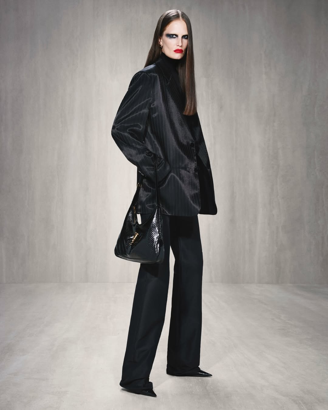 ახალი კოლექცია სავსეა მონოქრომული ლუქებით, 90-იანი წლებით შთაგონებული სილუეტებით, მათ შორის - ტომ ფორდის ეპოქის პარალელებით. ვხვდებით საღამოს კაბებს და ორეულებს, კლასიკურ პიჯაკებსა და შარვლებს, ქურთუკებს, თრენჩებს და პალტოებს, რომლებიც გამჭვირვალე, ბრჭყვიალა, ტყავის ქსოვილებითაა შექმნილი და ბევრ მათგანს ბეწვი აფორმებს. კოლექცია როგორც ქსოვილებით, ისე ფერთა პალიტრითა და პრინტებით მრავალფეროვანია, ხშირად მეორდება Gucci-სთვის დამახასიათებელი ყვავილოვანი მოტივები, ჩანთებს, ფეხსაცმელებს და აქსესუარებს კი Gucci-ს GG ლოგო აფორმებს.
